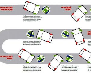 Гавный контраварийный прием в условиях скользкой дороги — снижение привычной скорости на 5–10 км (например, с 80 до 60–70 км/час) и увеличение дистанции до впереди идущего авто до 3–4 корпусов — этим вы выиграете золотые доли секунды на принятие правильного решения в случае внезапного изменения дорожной обстановки. А еще…, сообщает. Начнем с главного принципа: вероятность возникновения аварийной ситуации нужно снизить до минимума. Так, если вы еще не успели залить в бачок омывателя незамерзающую жидкость и поменять летнюю резину на зимнюю, нужно сделать это как можно быстрее. А главным контраварийным приемом в условиях скользкой дороги является снижение привычной скорости на 5–10 км (например, с 80 до 60–70 км/час) и увеличение дистанции до впереди идущего авто до 3–4 корпусов — этим вы выиграете золотые доли секунды на принятие правильного решения в случае внезапного изменения дорожной обстановки. В числе наиболее серьезных зимних опасностей стоит отметить потерю контроля над автомобилем. Занос может возникнуть даже в том случае, если водитель на небольшой скорости в 40–50 км/час попадет одним колесом в яму, наедет на препятствие или ошибочно нажмет на тормоз в повороте. Что тогда делать? Ответы — в нашей инфографике. Кликните по изображению для увеличения РАБОТА С РУЛЕМ И ПЕДАЛЯМИ 1. Руль. Обе руки должны постоянно находиться в верхнем секторе рулевого колеса. Нельзя наваливаться на руль телом или сидеть от него далеко — руки должны быть чуть согнуты в локтях. 2. КПП. На скользкой дороге нужно использовать торможение двигателем — последовательное быстрое переключение с повышенной передачи на пониженную: с пятой или четвертой на третью передачу, а затем — на вторую. На скорости ниже 60 км/час в гололед лучше включать вторую передачу. Категорически запрещено нажимать на тормоз при повороте или заносе, а также катиться на нейтралке. 3. Тормоза. При приближении к «зебре» или остановке общественного транспорта лучше заранее перенести ногу с педали газа на педаль тормоза. При экстренном торможении на прямой в авто с ABS педаль тормоза нужно нажать как можно сильнее, а если ABS нет, то тормозить нужно импульсами, не допуская блокировки колес. 4. Обратите внимание на посадку. К спинке нужно прижиматься как можно плотнее, чтобы моментально почувствовать потерю устойчивости авто и принять меры, чтобы исправить ситуацию. КОГДА ТОРМОЗ НЕ ПАНАЦЕЯ Согласно п. 12.3 ПДД, «в случае возникновения опасности для движения или препятствия, которое водитель объективно способен обнаружить, он должен немедленно принять меры для снижения скорости вплоть до остановки транспортного средства или безопасного для других участников движения объезда препятствия». Этот пункт не зря сформулирован настолько заковыристо (могли просто написать о том, что водитель обязан нажать на тормоз) — резкий удар по педали на скользком может привести к блокировке колес, если на авто нет ABS, и потере контроля над машиной (неуправляемый автомобиль движется юзом 100–150 метров). А если ABS есть, то все равно остановочного пути может не хватить для предотвращения аварии. Более того: нажатие на педаль тормоза с одновременным поворотом руля приведет к заносу авто вплоть до разворота на 180–360 градусов. Поэтому в процессе замедления нужно быть готовым к тому, что педаль тормоза нужно отпуст